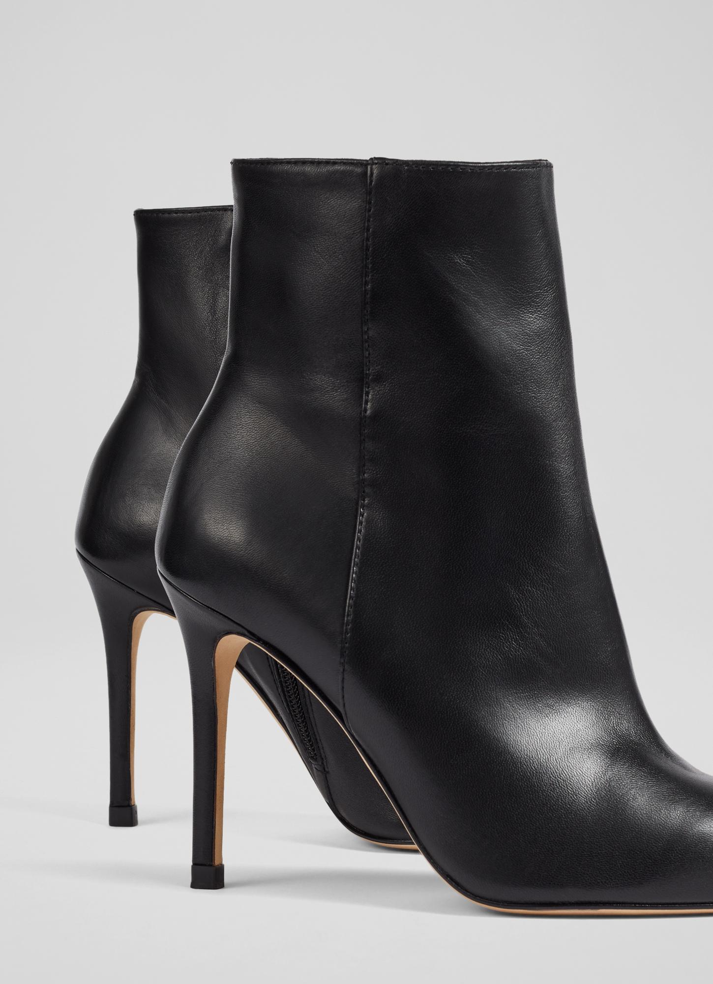 Leather Stiletto Heel Ankle Boots Black